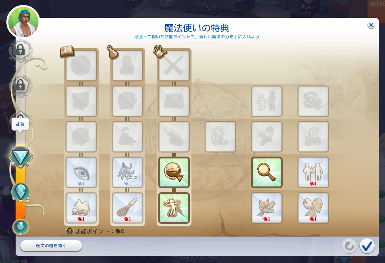 しかし全員が「徒弟」ランクへ到達。そして全員呪文と薬のレシピを3つずつ開放しています。