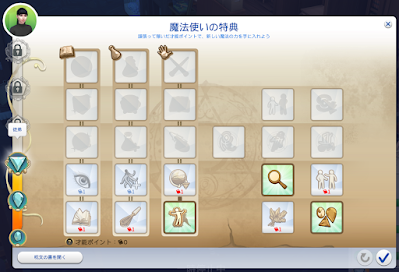 魔法使いランクは徒弟に到達。ボタンちゃんは古代の血統持ちなので才能ポイントは5ポイントでした。2ポイント多い分「知は魔法なり」「チャージ制御」の2つをプラスで獲得しています。