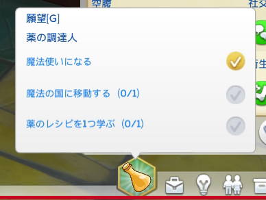 「説明文によれば『この薬を飲んだシムは死ぬとすぐに復活』するとのことなんだ。MySimsトロフィーのゾンビカール、死の花、デスメタルの3つで作成することが出来るよ。今日は僕がこの薬を飲んで、いっぺん死んでみようと思って。」